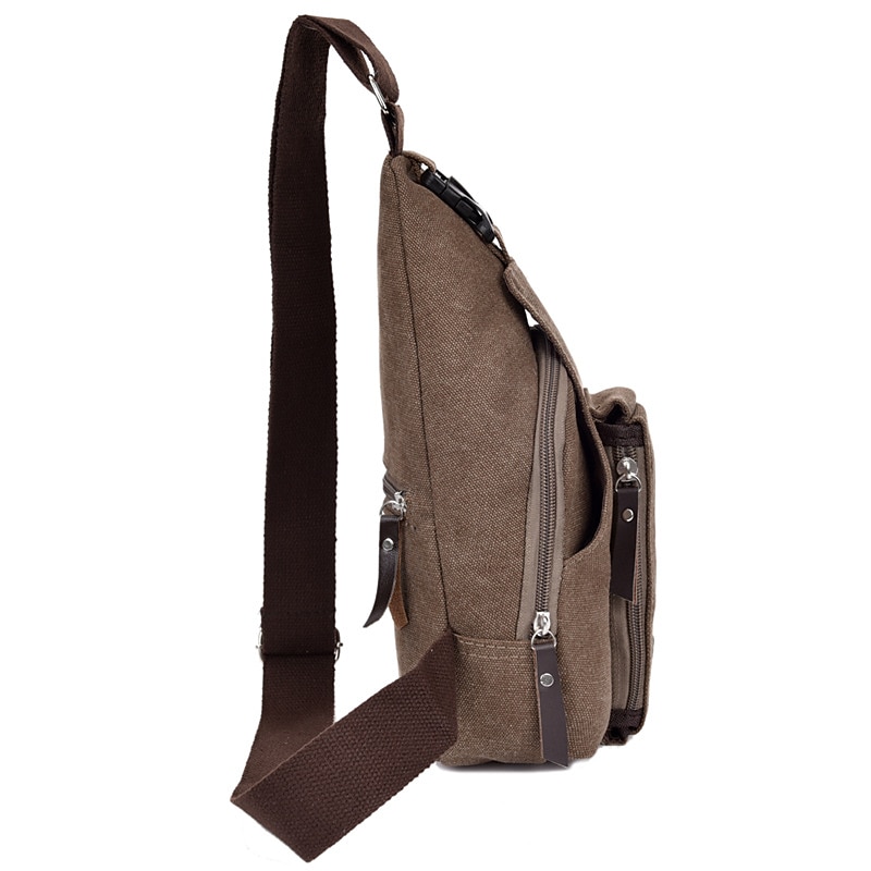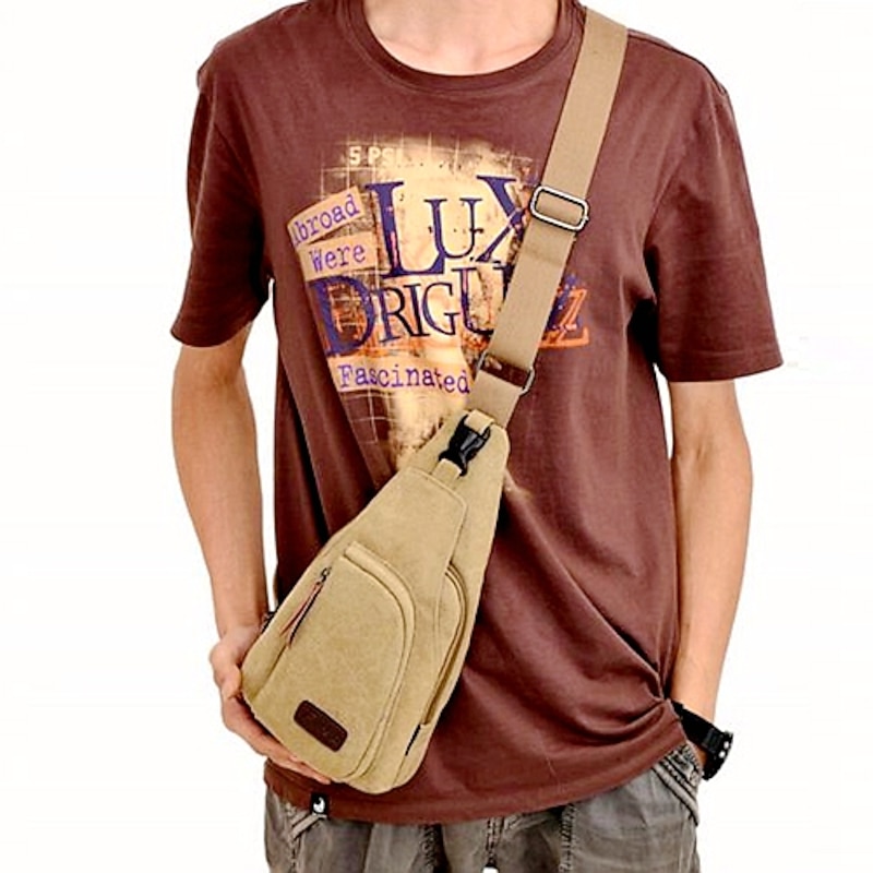 Unisex Sling Shoulder Bag Chest Bag Canvas Outdoor Sports Solid Colored Black Army Green Brown 11