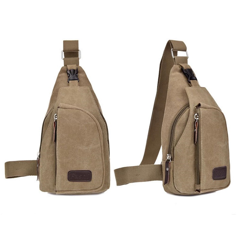 Unisex Sling Shoulder Bag Chest Bag Canvas Outdoor Sports Solid Colored Black Army Green Brown 4