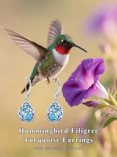 • Design: These hummingbird leverback earrings use the unique texture of natural turquoise as a canvas, with intricate openwork silverwork outlining a vivid natural scene. Flying hummingbirds, blooming daisies, and intertwining vines,every detail brims with vitality. It is not merely an accessory but a poem frozen in time, celebrating the harmony and beauty of nature
