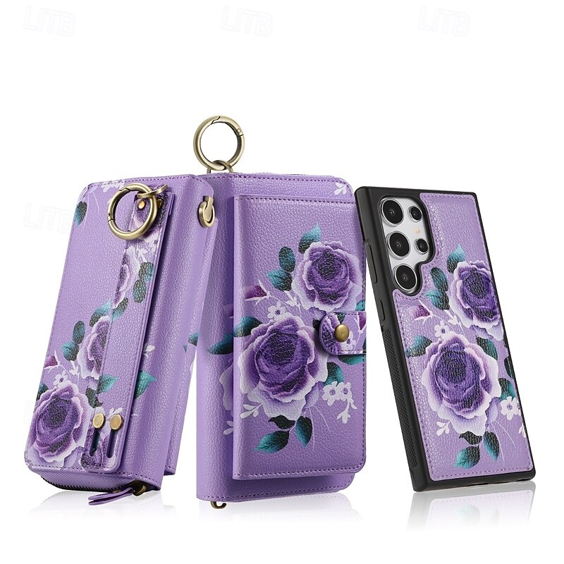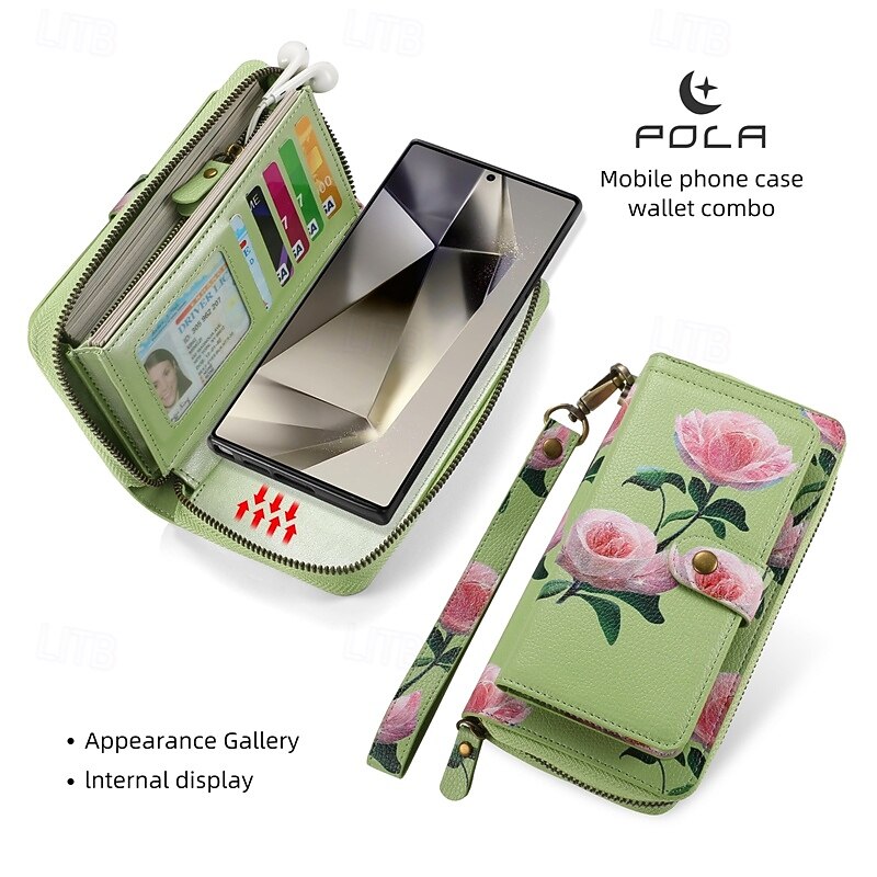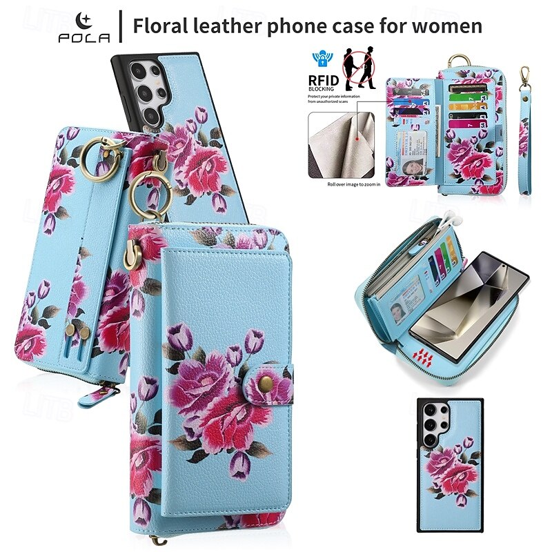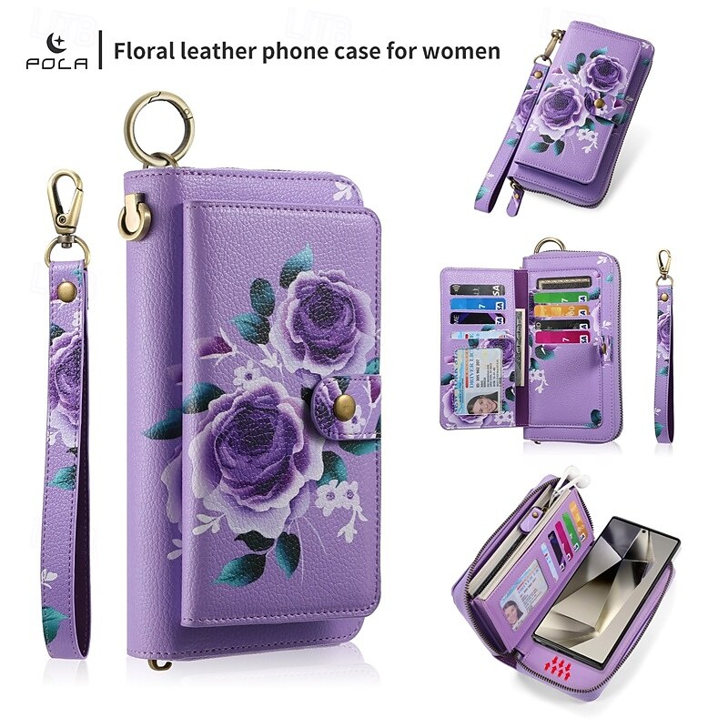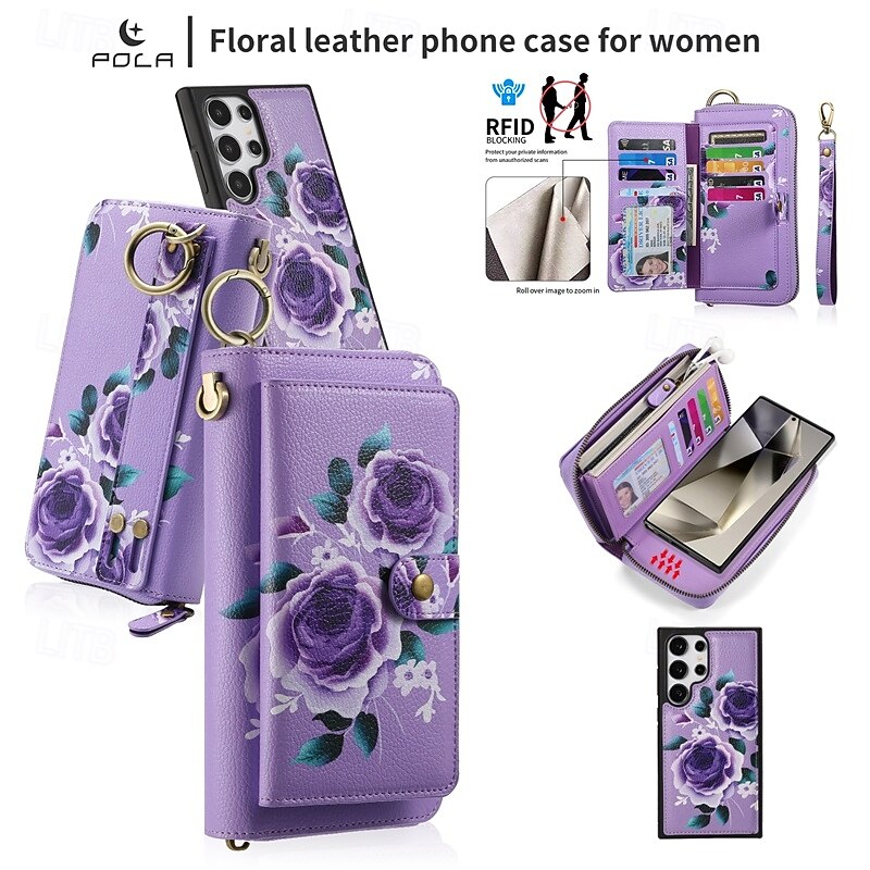 More information about Phone Case For S24 S23 Ultra Plus S22 Plus Ultra Back Cover Wallet Case Zipper with Wrist Strap Card Slot Retro TPU PU Leather