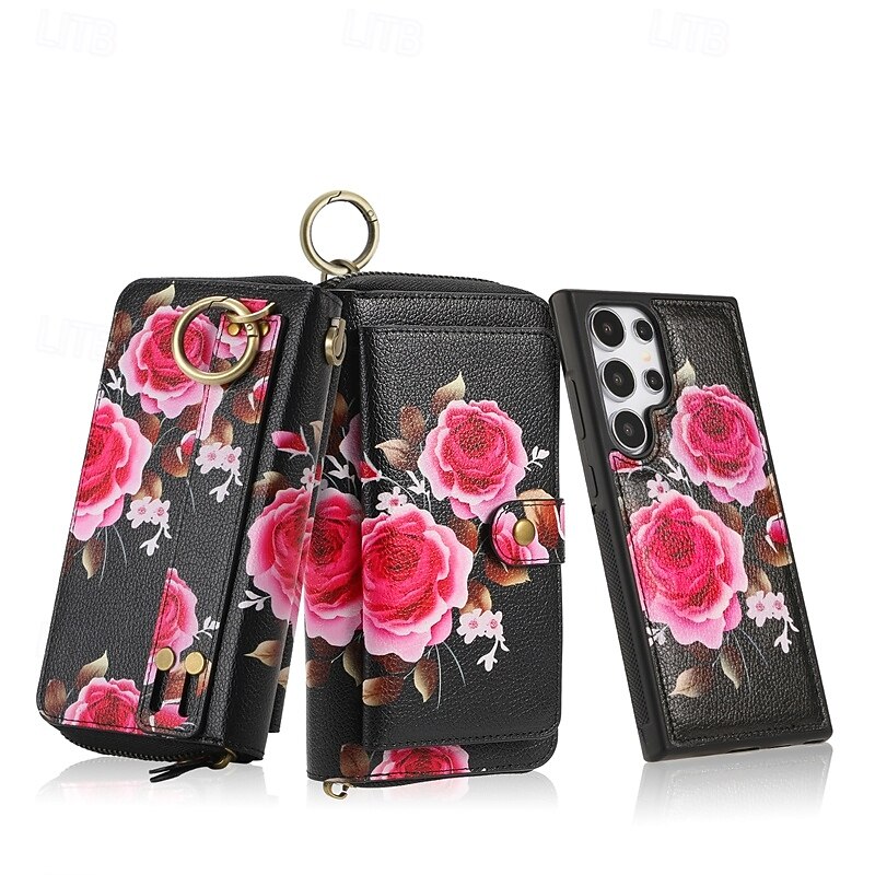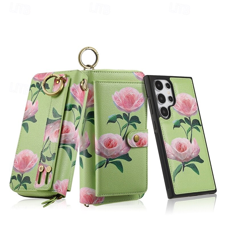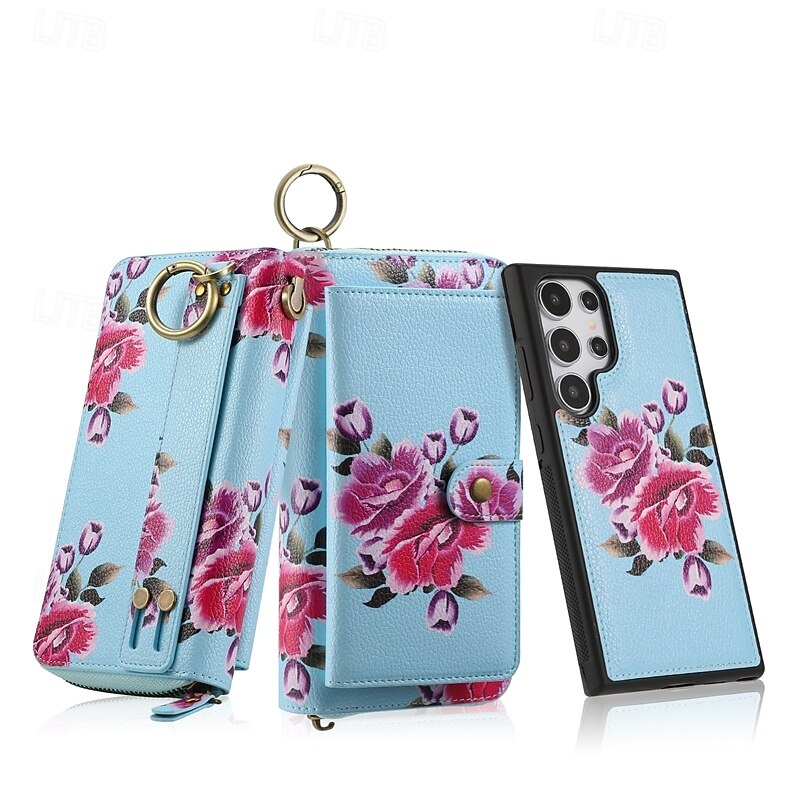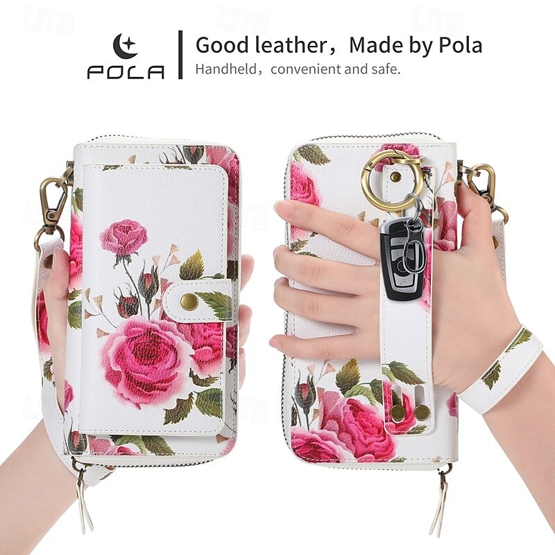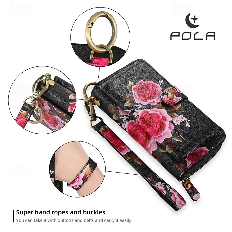 More information about Phone Case For S24 S23 Ultra Plus S22 Plus Ultra Back Cover Wallet Case Zipper with Wrist Strap Card Slot Retro TPU PU Leather