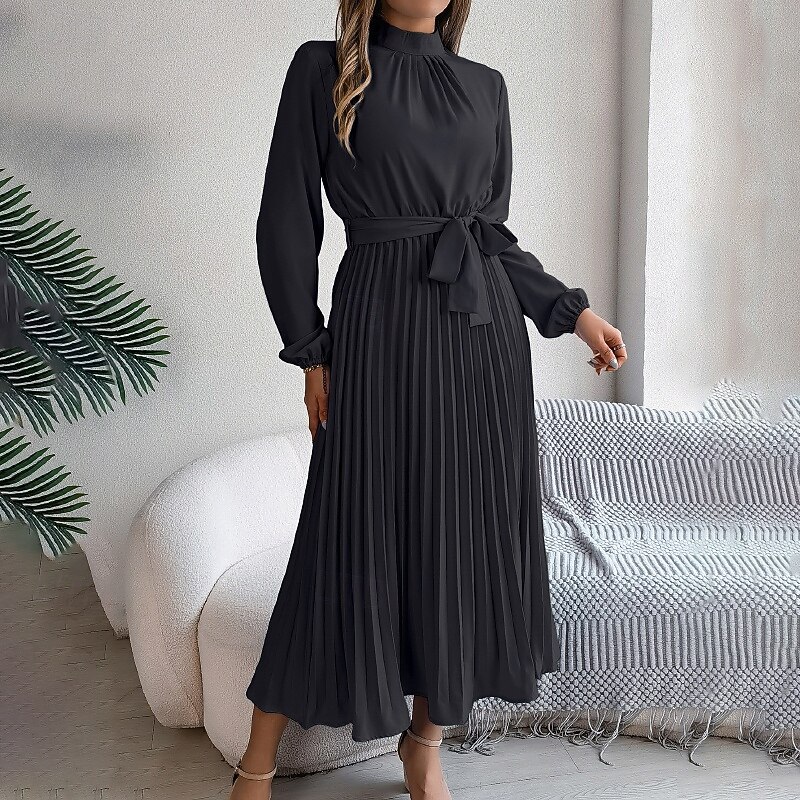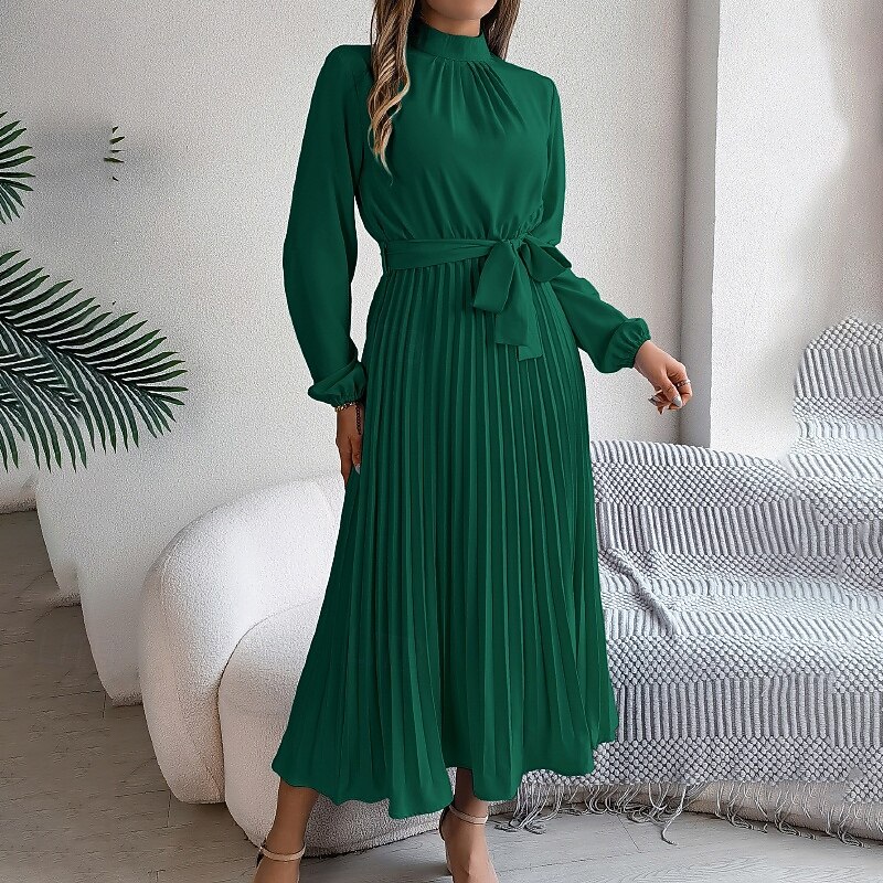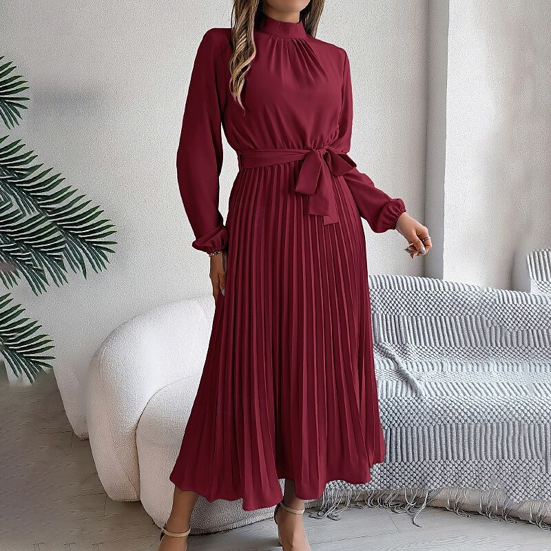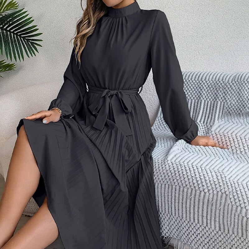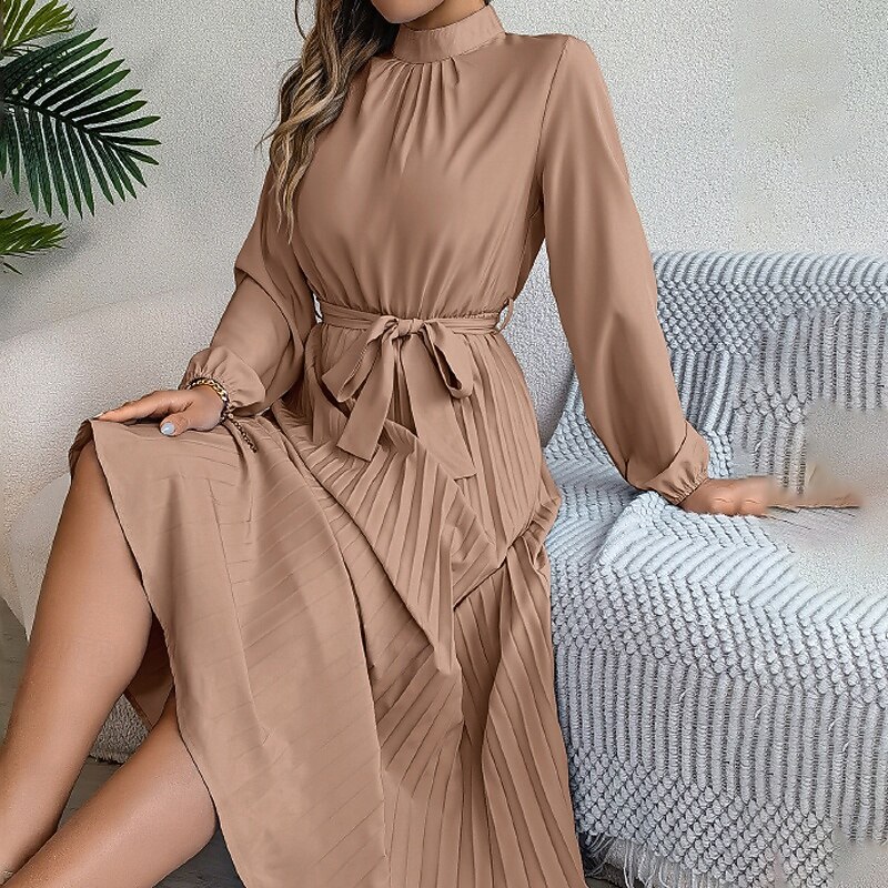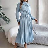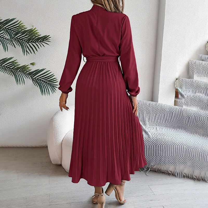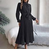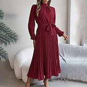 More information about Women's Midi Dress Party Dress Cocktail Dress Satin Dress Elegant Fashion Modern Party Evening Party Regular Fit Plain Long Sleeve Stand Collar Black Pink Wine Green Fall Winter