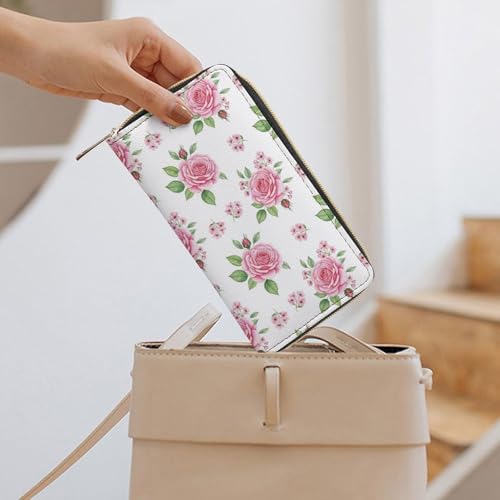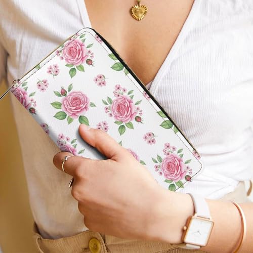 HOT ! Wallets for Travel Accessories, Large Capacity Floral Flowers Pink Rose Wallet with Zipper, Wallet for Card Cash Holder
