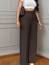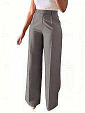 More information about Women's Wide Leg Dress Pants Streetwear Stylish Full Length Natural Plain Pocket Elastic Waist Comfy Formal Office Street claret Dark-Gray Yellow Coffee Fall Regular Fit