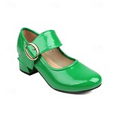More information about Women's Green Patent Leather Mary Jane Pumps with Gold Buckle and Block Heel, Retro Dress Shoes for Work, Parties, and Vintage-Inspired Outfits