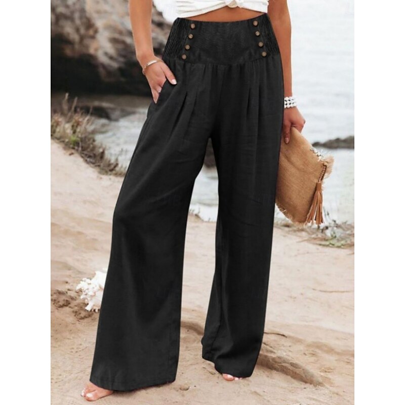 HOT ! Women's Cotton Linen Wide Leg Solid Color Chinos Baggy Pants Basic Casual Full Length High Waist Plain Elastic Waistband Comfy Soft Comfortable Micro-elastic Outdoor Street Beach