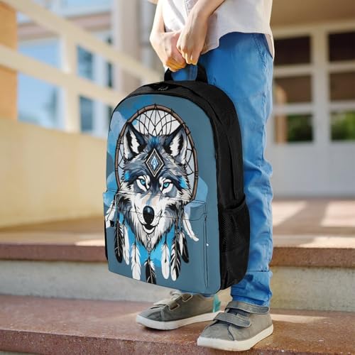 HOT ! Backpack for Men, Native Wolf Dream Catcher Portable Multi-Functional Daypack for Business Trip, Cute Spacious Reusable Shoulder Bag with Adjustable Strap