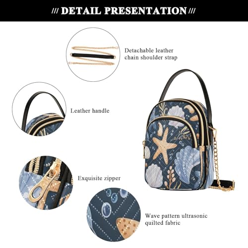 Starfish Shell Shoulder Bags for Women Retro Classic Handbag Purse Small Purses with Chain 3