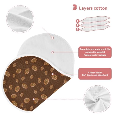 MCHIVER Coffee Bean Cocoa Brown Baby Burp Cloths Cotton Washcloths Absorbent Soft Burping Rags for Baby Girl Boys Burpy Cloth Bib 2 Pack 3