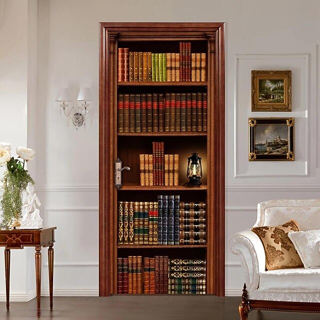 HOT ! Vintage Bookshelf Door Covers Door Tapestry Door Curtain Decoration Backdrop Door Banner for Front Door Farmhouse Holiday Party Decor Supplies
