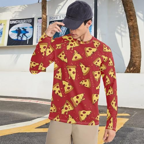 Bolaz Mens UV Protection Shirts Rash Guard Long Sleeve UPF 50+ Red Pizza Quick Dry S 1