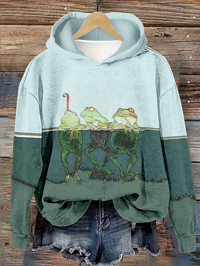 More information about Women's Pullover Hoodie Sweatshirt Graphic Animal Casual Long Sleeve Hooded Regular Tops Party Evening Wear Street Dailywear Green Spring Fall Winter