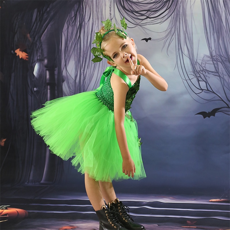 Kids Girls' Dress Party Dress Leaf Witch costume kids halloween custome Sleeveless Performance Special Occasion Mesh Elegant Fashion Beautiful Polyester Knee-length Party Dress Swing Dress Tulle Dress 10