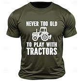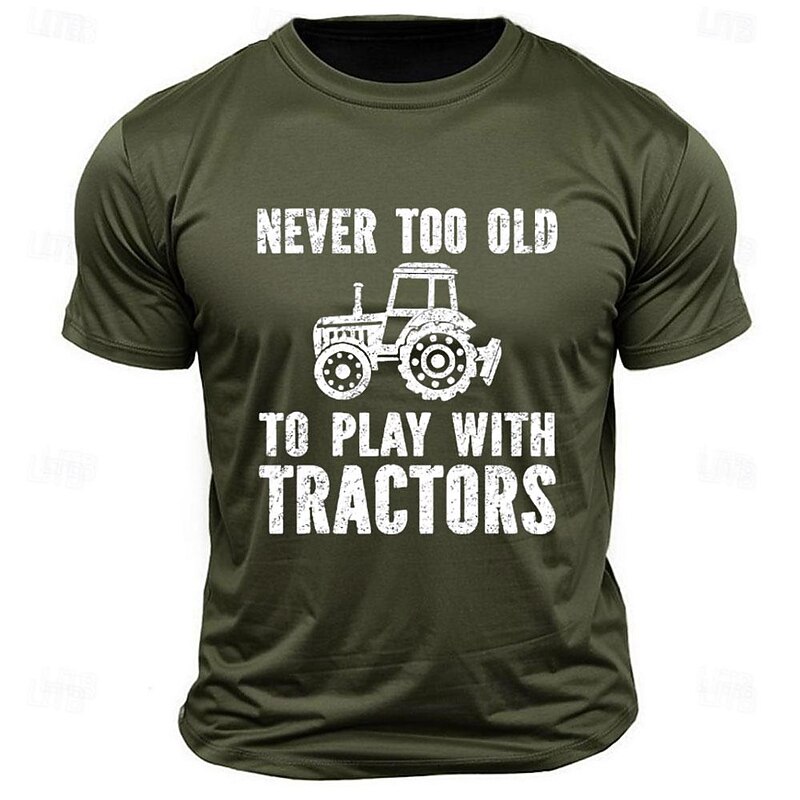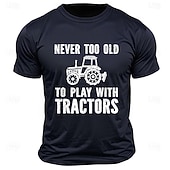 Highlights [Fabric] : Crafted from 100% high-quality cotton, this men's t-shirt offers a soft, breathable, and comfortable fit. The micro-elasticity of the fabric ensures ease of movement while maintaining its shape even after multiple washes. [Fit] : Designed with a classic regular fit, this t-shirt features a crew neck and short sleeves, providing a versatile style that is perfect for layering or wearing alone. The durable fabric and timeless cut make it a wardrobe staple for any casual occasion. [Design Highlights] : The t-shirt showcases a humorous "Never Too Old to Play with Tractors" letter print, complemented by a retro tractor graphic. The bold design contrasts perfectly against the deep hues of black, army green, dark blue, and dark gray, adding a playful yet stylish touch to your casual wear. [Occasions] : Ideal for sports, outdoor activities, and street style, this tee is designed for those who appreciate comfort and a touch of humor. Whether you're a tractor enthusiast or simply enjoy a quirky print, this shirt is a great choice for spring and summer outings. [Size Range] : Available in a wide range of sizes from S to XXL, this t-shirt caters to adults seeking a classic, comfortable fit. It's suitable for anyone who appreciates a blend of casual style and comedic flair.