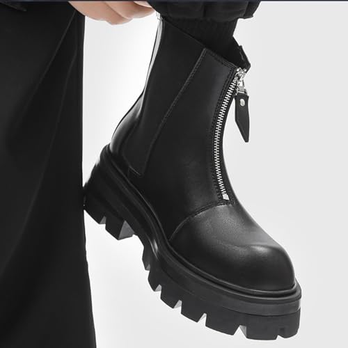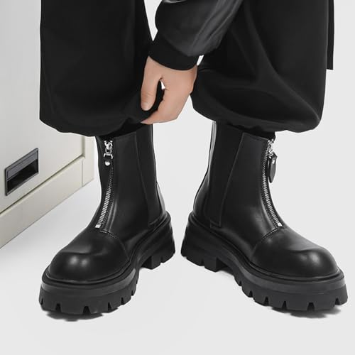 Men’s Leather Platform Chelsea Boots Classic Round Toe Lug Sole Front Zipper Ankle Boots Outdoor Casual Comfortable Business Office Dress Boots 6