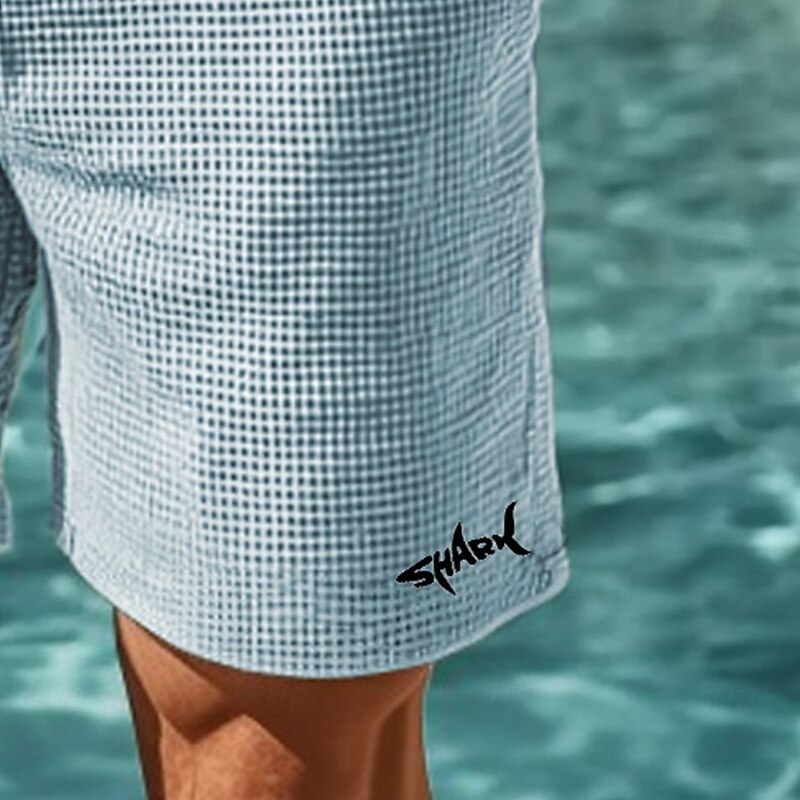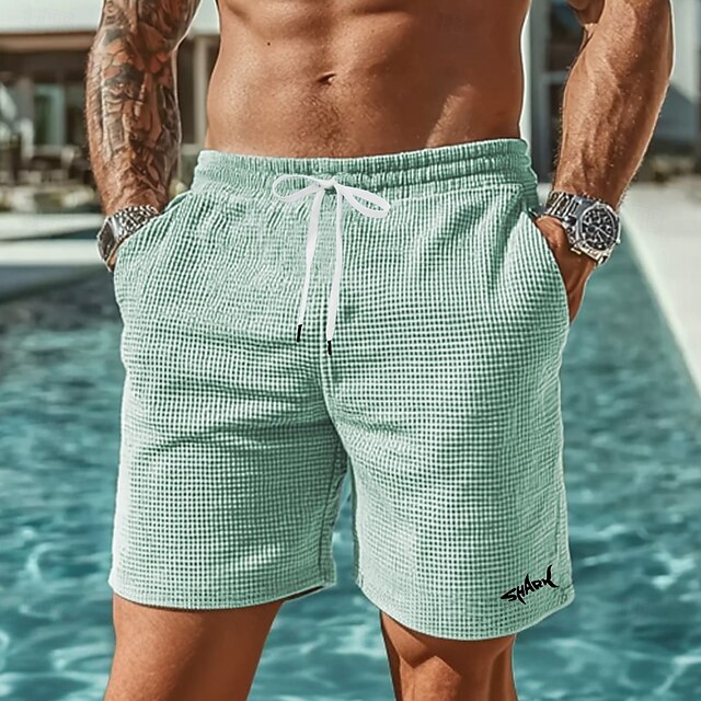 HOT ! Men's Animal Shark Sea Creatures Waffle Shorts Sweat Shorts Casual Shorts Mid Waist Fashion Casual Vacation Jogging Workout Elastic Drawstring Waist Shorts with Pockets Designer Clothing Apparel