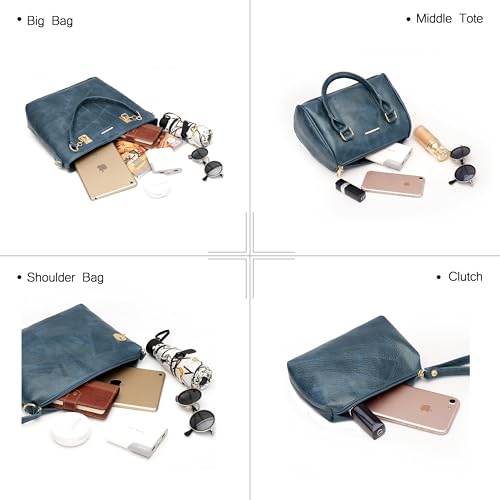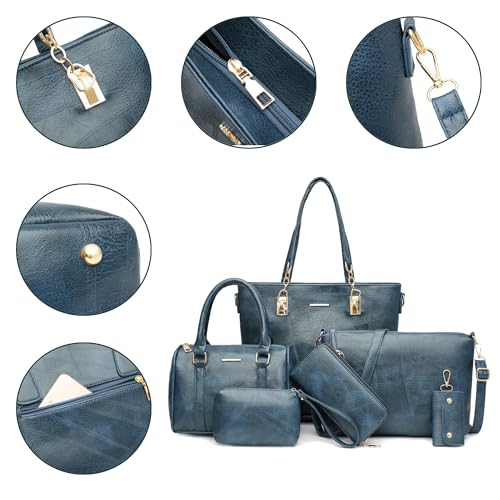 • 2E-youth 6pcs purse set designer handbags for women!Denim Blue purse color matching design, interpretation of a simple sense of fashion. Multi layered interior design, you can easily in any situation.Durable large tote bag can hold 14 inch Laptop or tablet,A4 documents or books, and your favorite high heels.Satchel shoulder bag can hold coin purse,long wallet,sunglasses,umbrella,cosmetics and other items.2E-youth clutch purse can hold your keys,lipstick,and other little items;