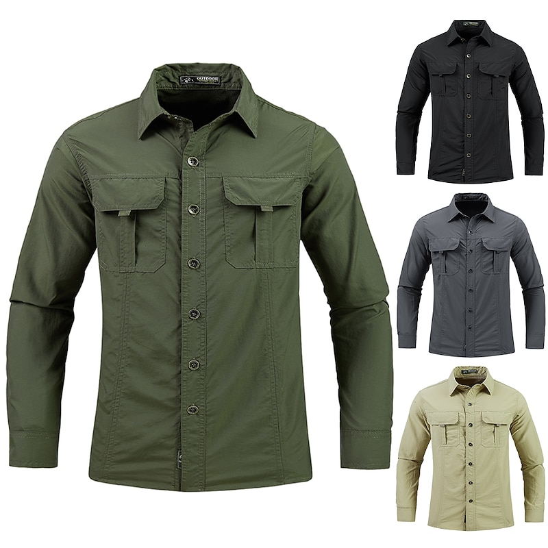 More information about Men's Hiking Shirt Fishing Shirt Outdoor Long Sleeve UPF50+ UV Protection Breathable Quick Dry Sweat wicking Top Summer Spring Outdoor Fishing Daily Wear Black Army Green Khaki