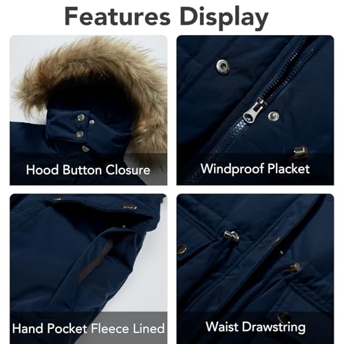 • ⭐Warm & Windproof:This women's long winter coat is made of high density fabric,combined with the design of hood closure,button placket and elastic rib cuffs,prevent wind penetrating.Fleece lining and premium filling help lock heat,always keep you warm,providing a comfortable wearing experience