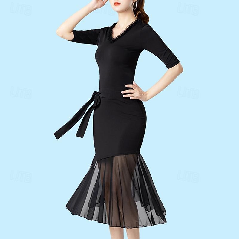 $49.99 - Latin Dance Ballroom Dance Dress Pure Color Splicing Tulle Women's Performance Training Half Sleeve High Cotton Blend 2025. Shop for cheap Practice Dresses online? Buy at lightinthebox.com on sale today!