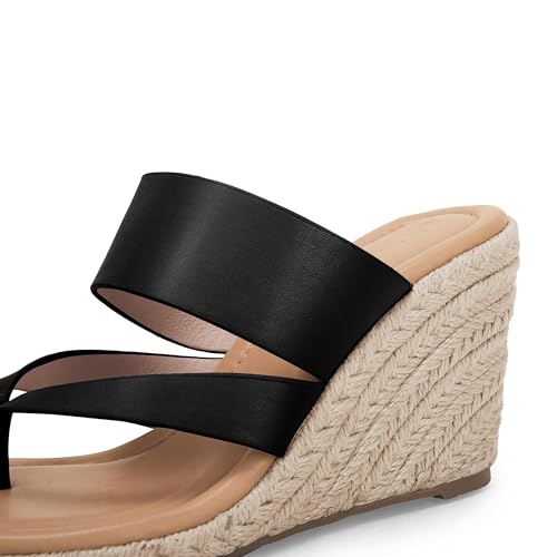 Coutgo Women's Espadrille Wedge Sandals Platform Thong Leather Strap Slides Backless Slip On Summer Casual Flip Flops 6