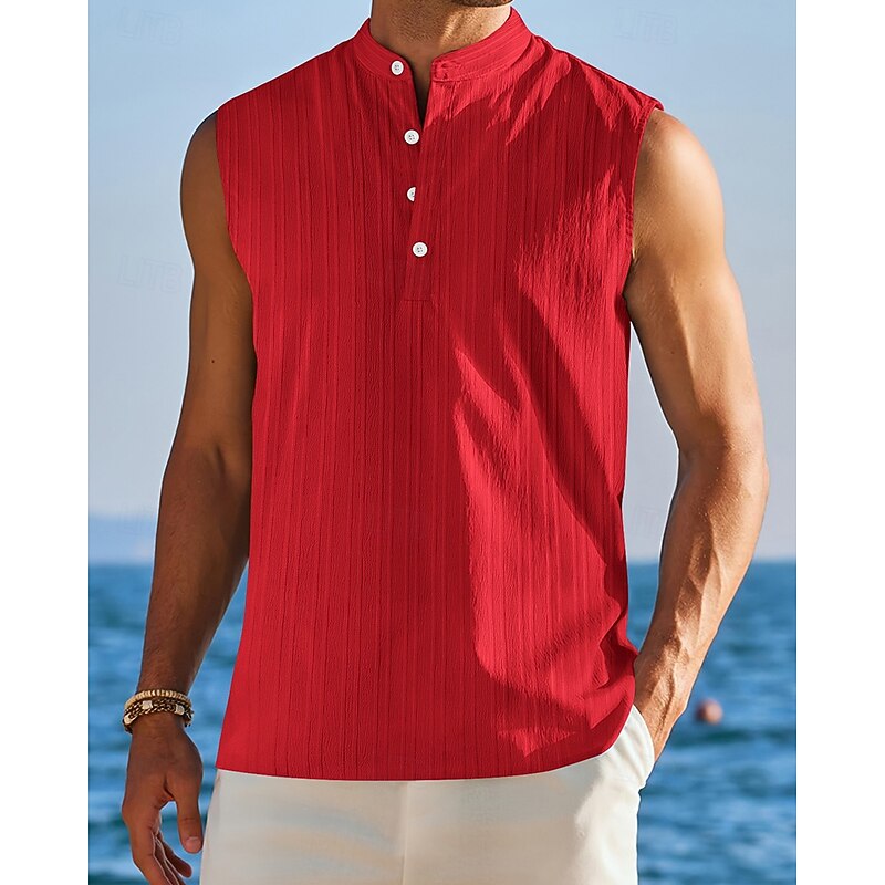 Men's Tank Top Vest Top Undershirt Sleeveless Shirt Sleeveless Standing Collar Summer Plain Fashion Designer Vacation Street Going out Black White Red Top Tee for Men 10