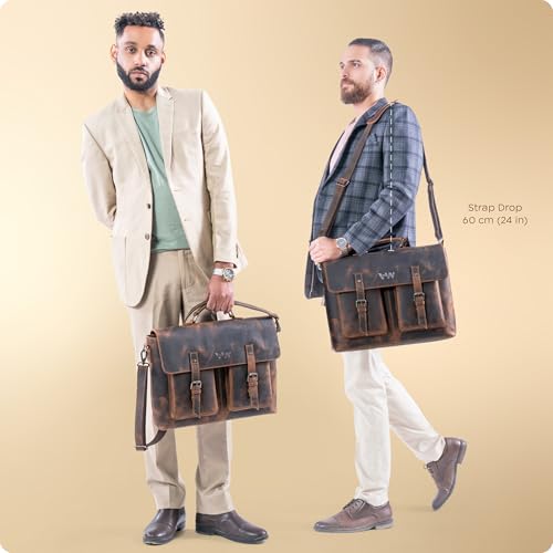 Handmade World Genuine Leather Messenger Laptop Bag 'The Optimus' Hunter Buffalo Leather Briefcase For Men Fits 17 Inch Computer Satchel Crossbody for Office Work Business 7