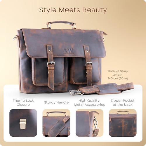 Handmade World Genuine Leather Messenger Laptop Bag 'The Optimus' Hunter Buffalo Leather Briefcase For Men Fits 17 Inch Computer Satchel Crossbody for Office Work Business 6