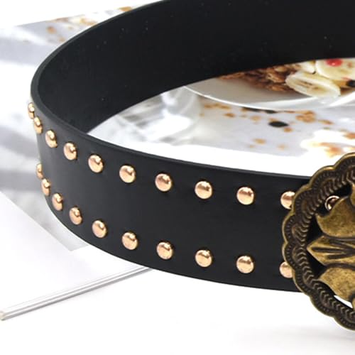 • Punk styles women's jeans belt with edgy studs accents and premium PU leather for fashion forward accessory that elevates any outfit