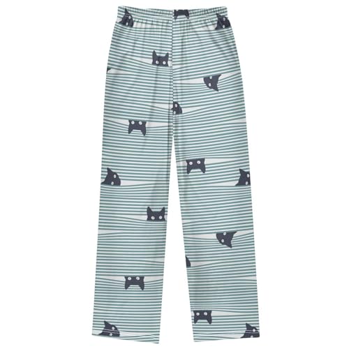 Boy's Pants Cat Horizontal Stripe Jogger Pants Elastic Waist Long Bottoms Trousers with Pockets 6-14 Years 7