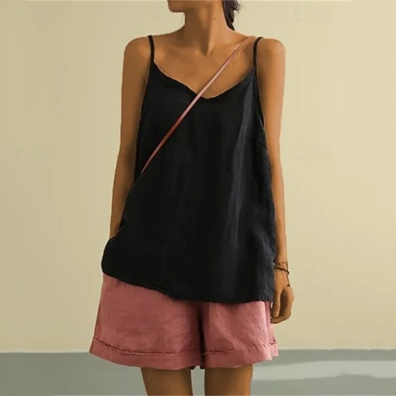 More information about Women's Cotton Linen Vest Plain Daily Stylish Basic Linen Vest V Neck Regular Tops Work Daily Holiday Black White Blue Summer