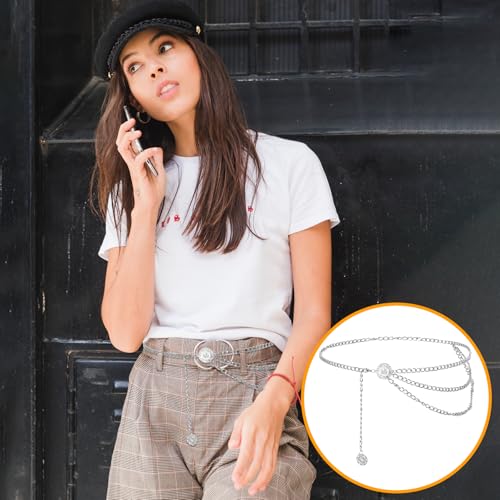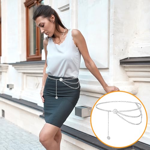 • Elegant Design: Featuring a multilayer structure with intricate coin pendants, this silver chain belt adds a touch of sophistication to your ensemble. The adjustable length of 100cm ensures a perfect fit for most waist sizes.