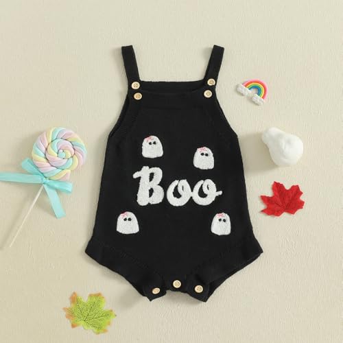 Baby Boy Girl Halloween Clothes Newborn Sweater Romper Pumpkin Ghost Knitted Romper Suspender Jumpsuit Outfits 4