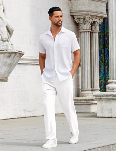 COOFANDY Mens Casual Pants Drawstring Elastic Waist Pants Linen Summer Beach Pants 1