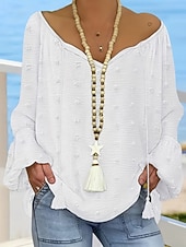 More information about Women's Blouse Lace Tops Plain Modern Casual Long Sleeve V Neck Regular Tops Daily Holiday Going out Patchwork White Summer