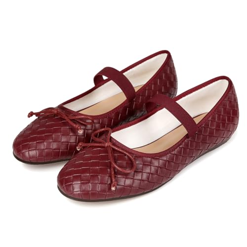 Woven Ballet Flats for Women Round Toe Bow Mary Jane Flat with Strap Comrtable Casual Dressy Shoes 7
