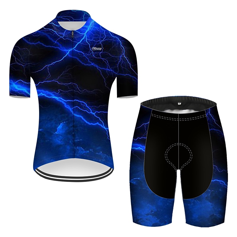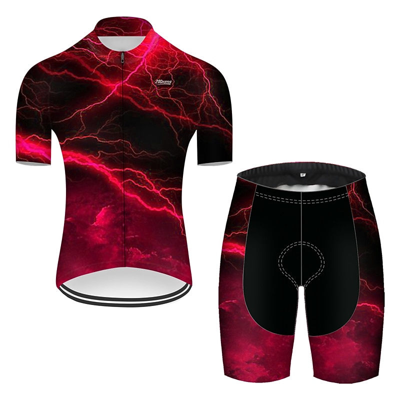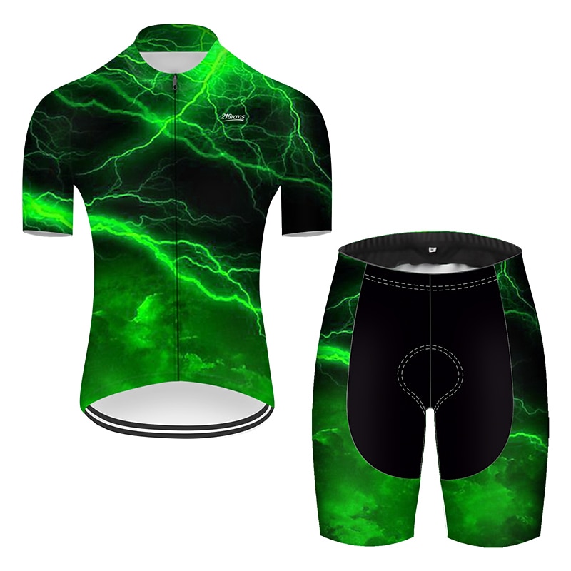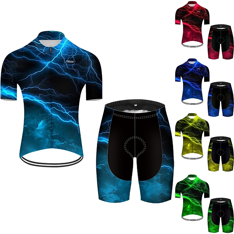 More information about Men's Cycling Jersey with Shorts Short Sleeve Mountain Bike MTB Road Bike Cycling Red Green Black Blue Gradient Lightning 3D Bike Clothing Suit 3D Pad Breathable Quick Dry Ultraviolet Resistant