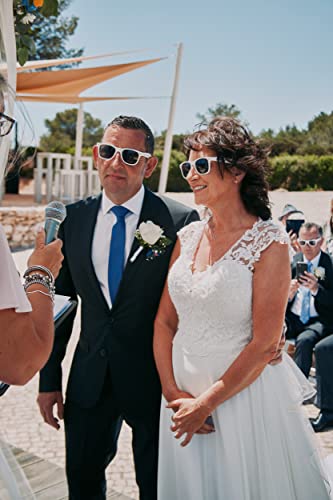 • Customized Bulk Glasses: Perfect for parties, graduations, weddings, birthday parties, prom, corporate events, bachelorette parties, bridesmaid gifts, wedding party favors events, kids parties, beach and outdoor events. Each pair sunglasses 5.7" wide for adults and kids - the perfect size.