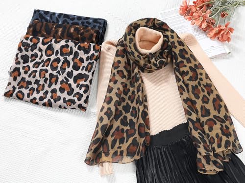 Women's Leopard Printed Long Scarf, Lightweight Soft Sheer Head Wrap Shawl Scarves for All Season 3