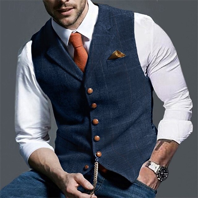 More information about Men's Vest Tweed Vest Waistcoat Vintage Fashion Spring & Fall Buttons Polyester Comfortable Plain Single Breasted V Neck Regular Fit Deep Green Navy Dark Gray Light Grey Vest