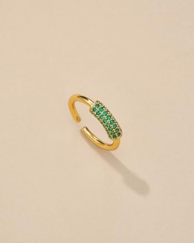 Dainty Thin Pave Green Emerald Adjustable Open Ring for Women by SNGIA, Summer Beach Unique Handmade CZ Band, Minimalist Gemstone Stackable Wedding Date Birthday Gift, Statement Irregular Trendy Ribbed Jewelry, Textured Patterned Fashion Accessories, Vintage Hammered Circular Nickle Free Gifts. 1