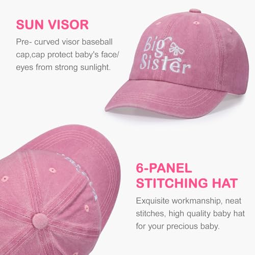 • Cute Embroidered Baseball Cap for Kids - Share the news that your little daughter is about to become a big sister! These cotton hats embroidered with the words "Big Sister" on the front. This sun cap is perfect for your little one's new role/promotion to big sister, as well as a great gift for baby announcements, baby showers, photos, and more. Celebrate this special moment in your family story with enthusiasm and joy!