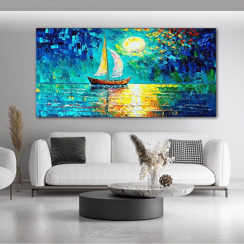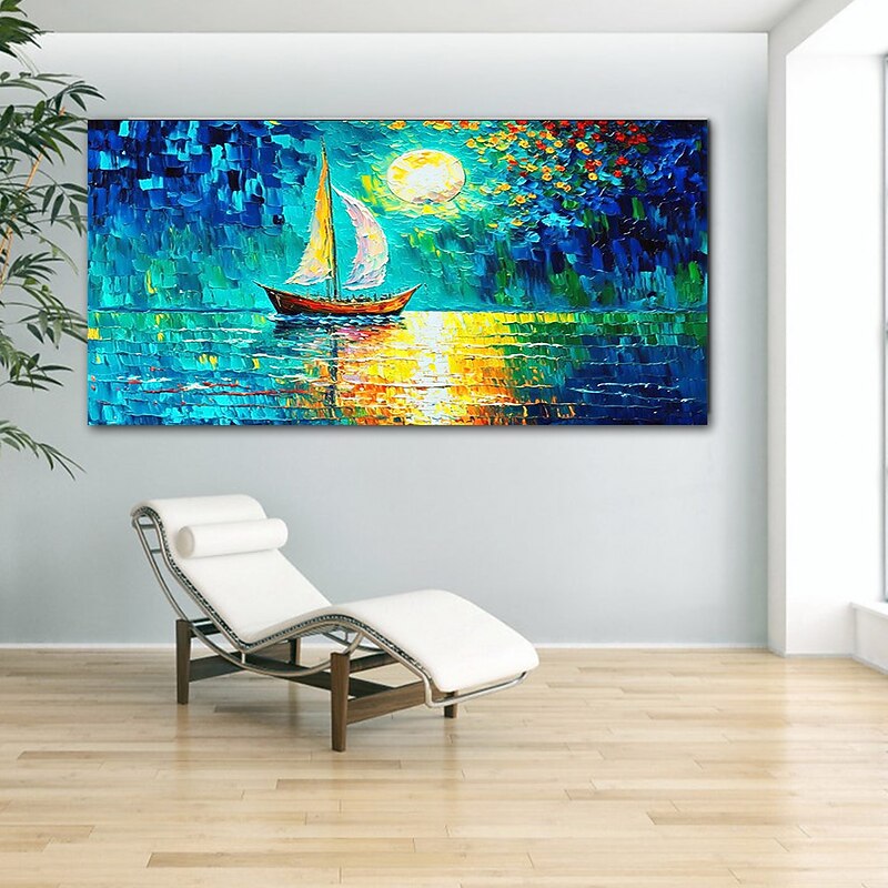 HOT ! Oil painting hand-painted Wall artAbstract Knife PaintingSea view BlueHome DecorationRolled Canvas Frameless And Unstretched