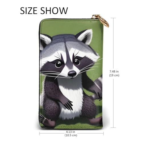 Cartoon Raccoon Prints Leather Long Clutch Wallet for Fashionable Girls and Women - Durable, Stylish, and Functional, Black, One Size 1