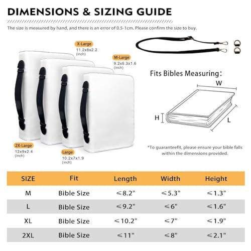 • 【Large Capacity】:Size 11" X 8.6" X 2.4" (28cm X 22cm X 6cm), bible bags and totes for women perfect fit for most bibles(Large, Standard, Medium, Small ) and books.Bible carrying case comes with pockets and slots to store your highlighters, pens, prayer journals, bookmarks, and more.