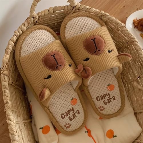 HOT ! Women's Capybara Linen Slippers Summer Breathable House Shoes, Cute Cotton Slides for Rooms Indoor Comfort Floor Sandals