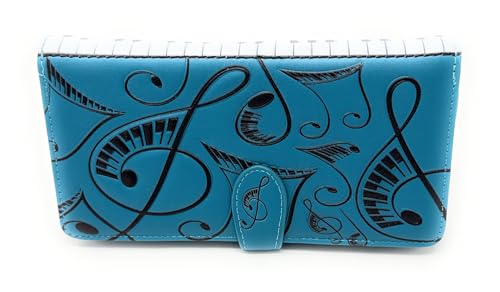 HOT ! Shag Wear Play That Funky Music Large Piano Wallet for Women and Teen Girls Vegan Faux Leather Teal 7"