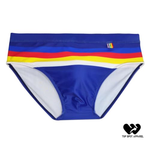 • SHOW YOUR STRIPES: Our colorful rainbow design features a matching rainbow loop tag. These men’s low rise, bikini-style swim briefs are crafted from 80% polyester and 20% spandex for casual comfort and a slim, close fit that’s breathable and comfortable