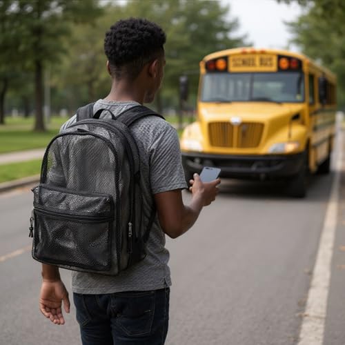 Transparent Mesh Backpacks for School Kids, Beach, Travel - Mesh See Through Backpack with Padded Straps Large 5