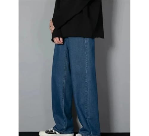 Men's Distressed Jeans, Classic Solid Color Loose Straight Wide-Leg Casual Denim Trousers 5